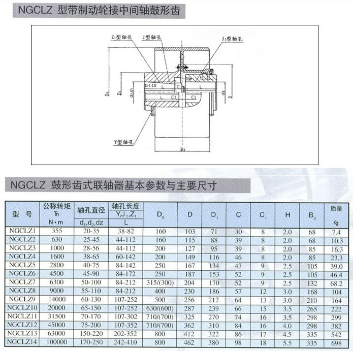NGCLZ型帶制動輪接中間軸鼓形齒式聯(lián)軸器